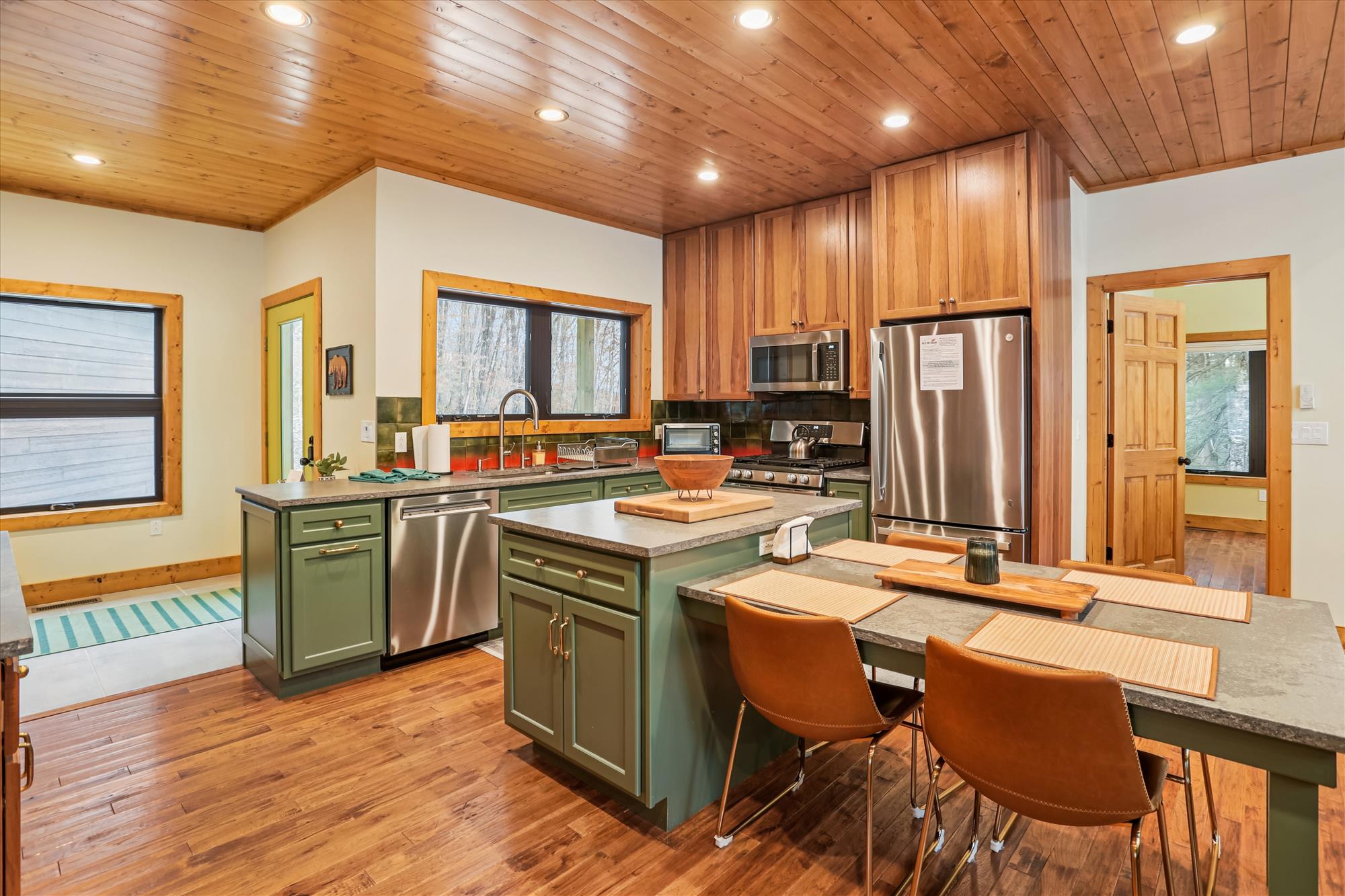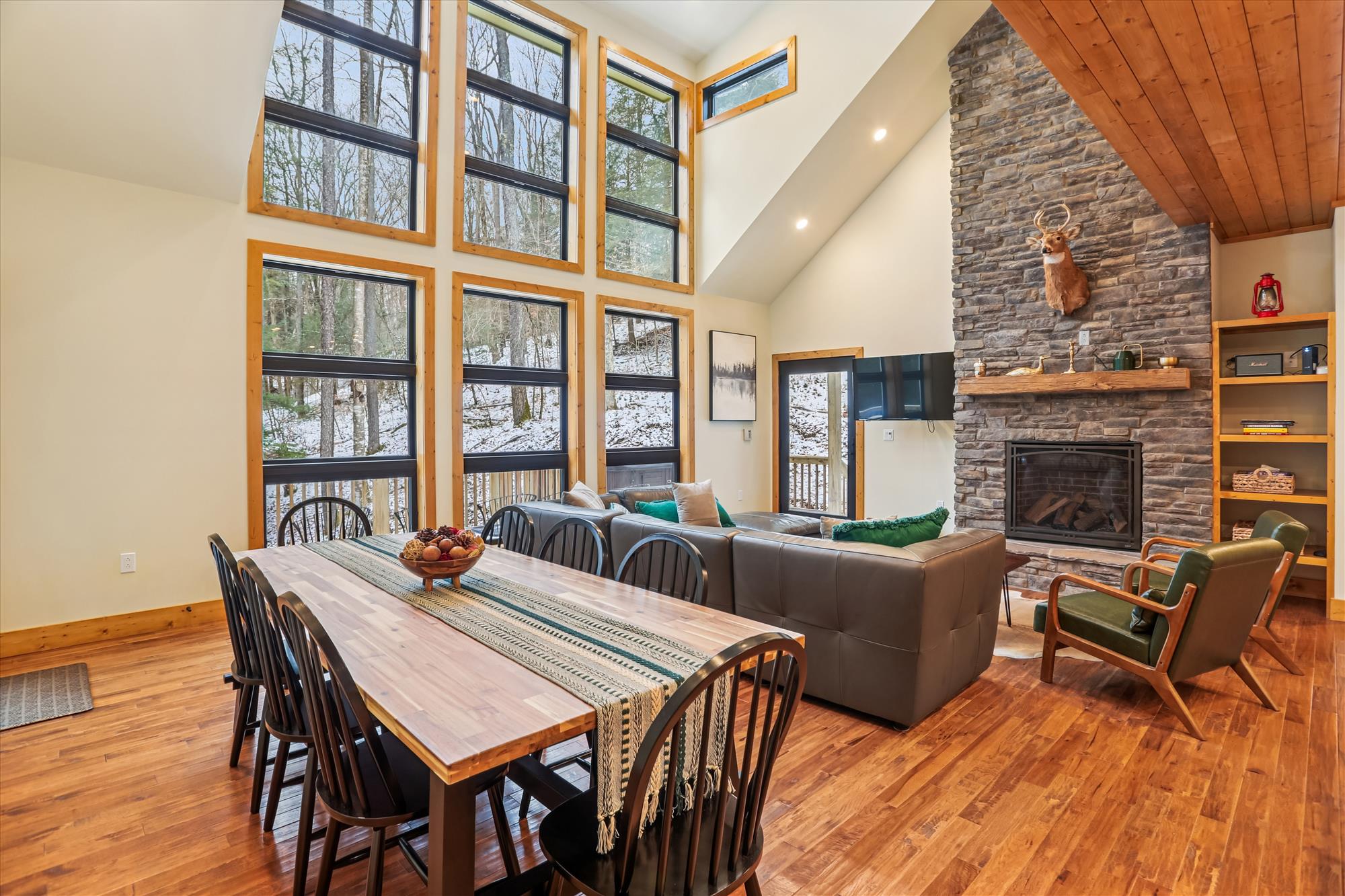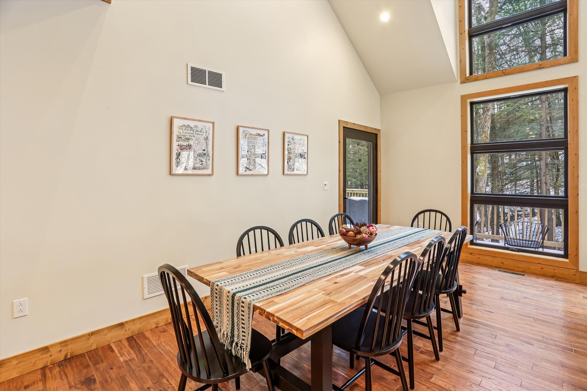 Nature awaits just outside of this lovely new contemporary home, and the generous column of windows brings it right inside to you. Tuckered Out is the newest addition to Best of Canaan’s vacation rental roster. Inside, everyone is sure to enjoy the open floorplan, modern kitchen, gas fireplace, and comfortable bedrooms. Outside enjoy all the recreational activities that Canaan Valley has to offer. Planning to watch the game or catch up on a little work? Tuckered Out offers multiple TV’s and the WIFI is free! Whether you are hiking, biking, skiing, fishing, or hunting, you can enjoy them all just steps or only a few miles away. Evenings will find you relaxing in the brand new outdoor hot tub and recalling all the reasons Canaan Valley should be annual vacation destination. Don’t stay up too late. You are sure to be Tuckered Out! Winter renters should plan on four- or all-wheel drive vehicles with good winter tires. Tire chains may be an important thing to bring along, just in case.