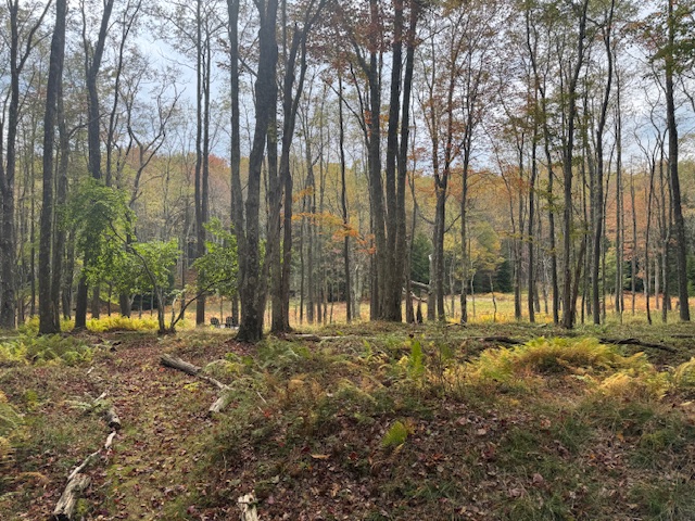 We agree that the level, wooded lot opening onto a meadow and stream is serene and a great place to relax.